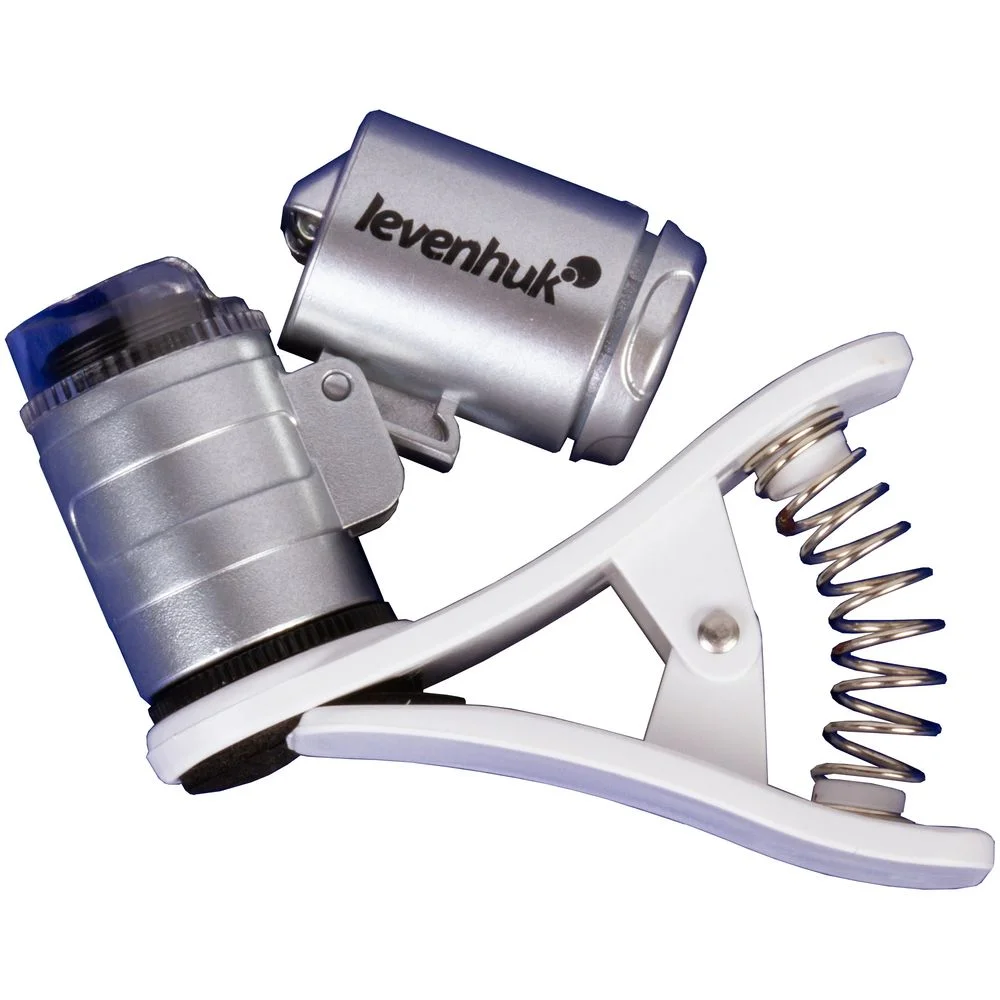 Микроскоп можно закрепить на камере смартфона или планшета и использовать для фото- и видеосъемки увеличенного изображения и таким образом фиксировать результаты наблюдений.В комплект входит чехол из полиэстера.