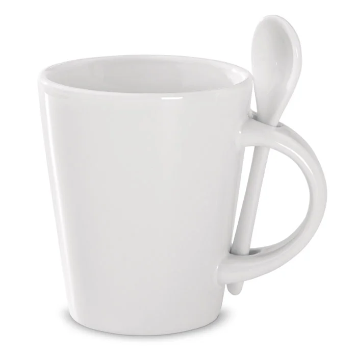 Керамическая кружка с ложкой объемом 340 мл со специальным покрытием для сублимационной печати.